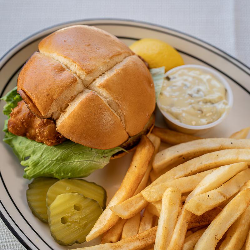 The main cafe 1/2 lb burgers are made from 100% extra lean ground beef grilled & served thick & juicy on a Kaiser bun. Includes choice of Soup, Salad, Fries or Onion Rings (+$1.00) | Sandwiches only: deduct -$1.00 | Additional ingredients: Cheese (American, Cheddar, Pepper Jack or Swiss) +$0.50 extra | Lettuce & Tomatoes +$0.75 extra